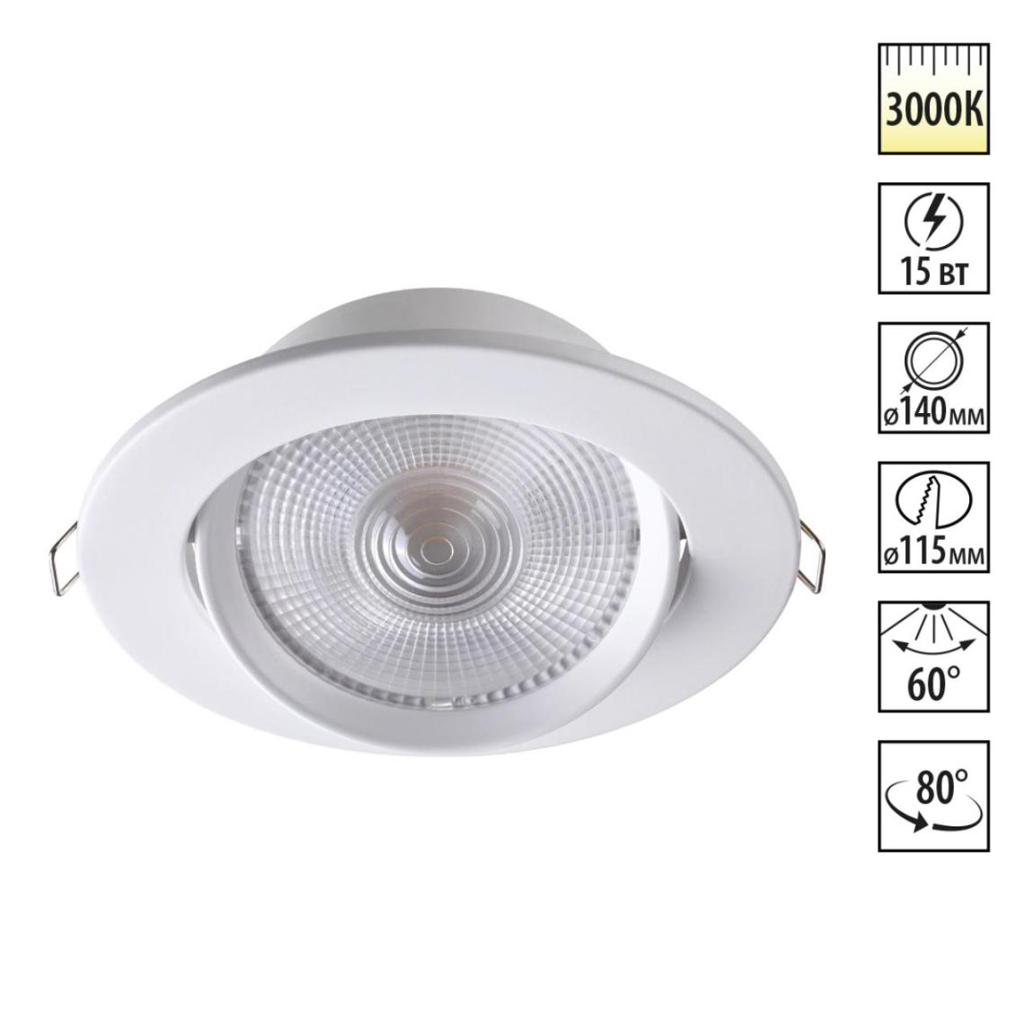 357999 SPOT NT19 554 белый Встраиваемый поворотный светильник IP20 LED 3000К 15W 85-265V STERN