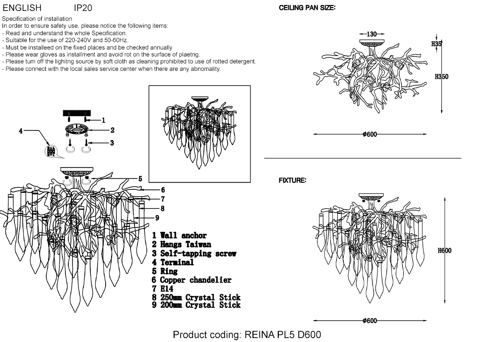 | Светильник диаметр (мм) | 600 |