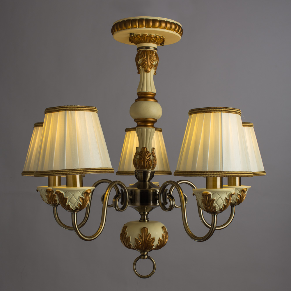 Сочетание белого и золотого, являясь классическим, всегда выглядит утонченно и эффектно. Текстильные плафоны на фоне бело-золотых чаш и металлического каркаса подарят ощущение тепла и комфорта. Мягкое сияние прекрасной люстры А9570PL-5WG украсит интерьер гостиной комнаты.