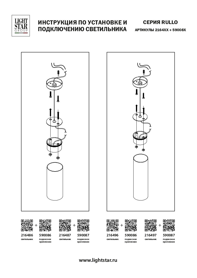 Подвесное крепление для светильников 2164ХX Rullo Lightstar 590086